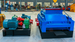 它是利用兩臺電機帶動兩副輥軸對物料進行擠壓,研磨的工作。對輥破碎度小于80mm、成品粒度要求50目-20mm的細碎作業